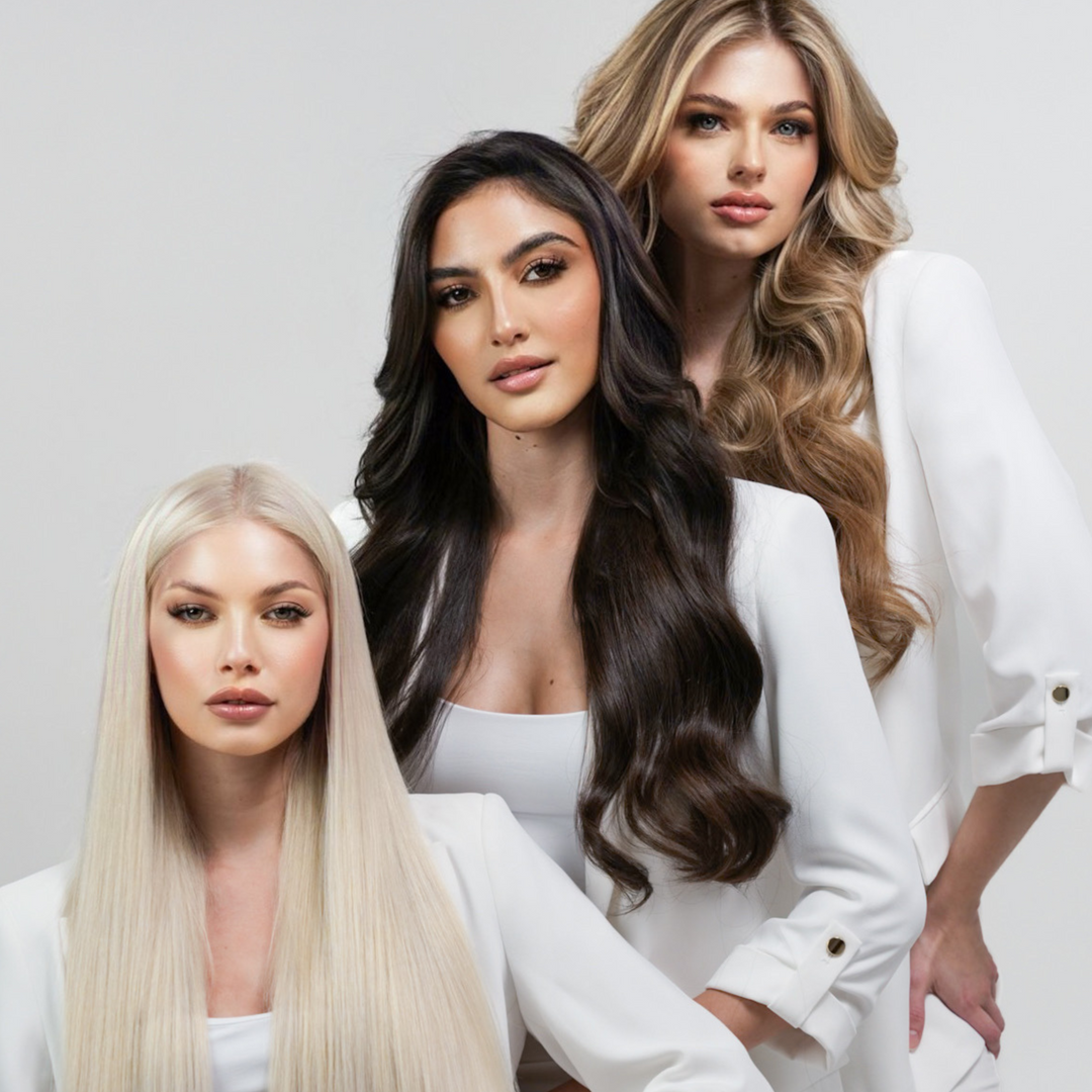 DISCOVER OUR EXCLUSIVE LUXURY HAIR EXTENSIONS, A TRUE REVOLUTION IN THE INDUSTRY. METICULOUSLY HANDPICKED AND AVAILABLE IN VARIOUS STYLES, INCLUDING BEADED WEFT, 3D INVISI-TAPE, CLIP-INS, AND KERATIN FUSION EXTENSIONS. REAL AUTHENTIC HAIR AT ITS FINEST.